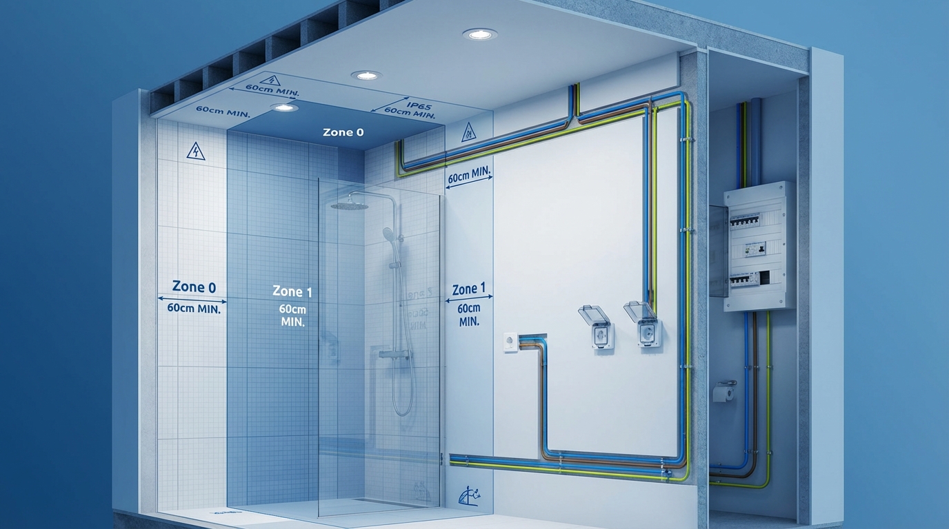 Wymagania dla instalacji elektrycznej w łazience to nie są jedynie „dobre praktyki”. Mówimy tu o zestawie konkretnych przepisów techniczno-budowlanych(1) oraz norm, które jasno określają, co wolno, a czego pod żadnym pozorem nie wolno robić w pomieszczeniu, gdzie wilgoć jest stałym elementem środowiska.