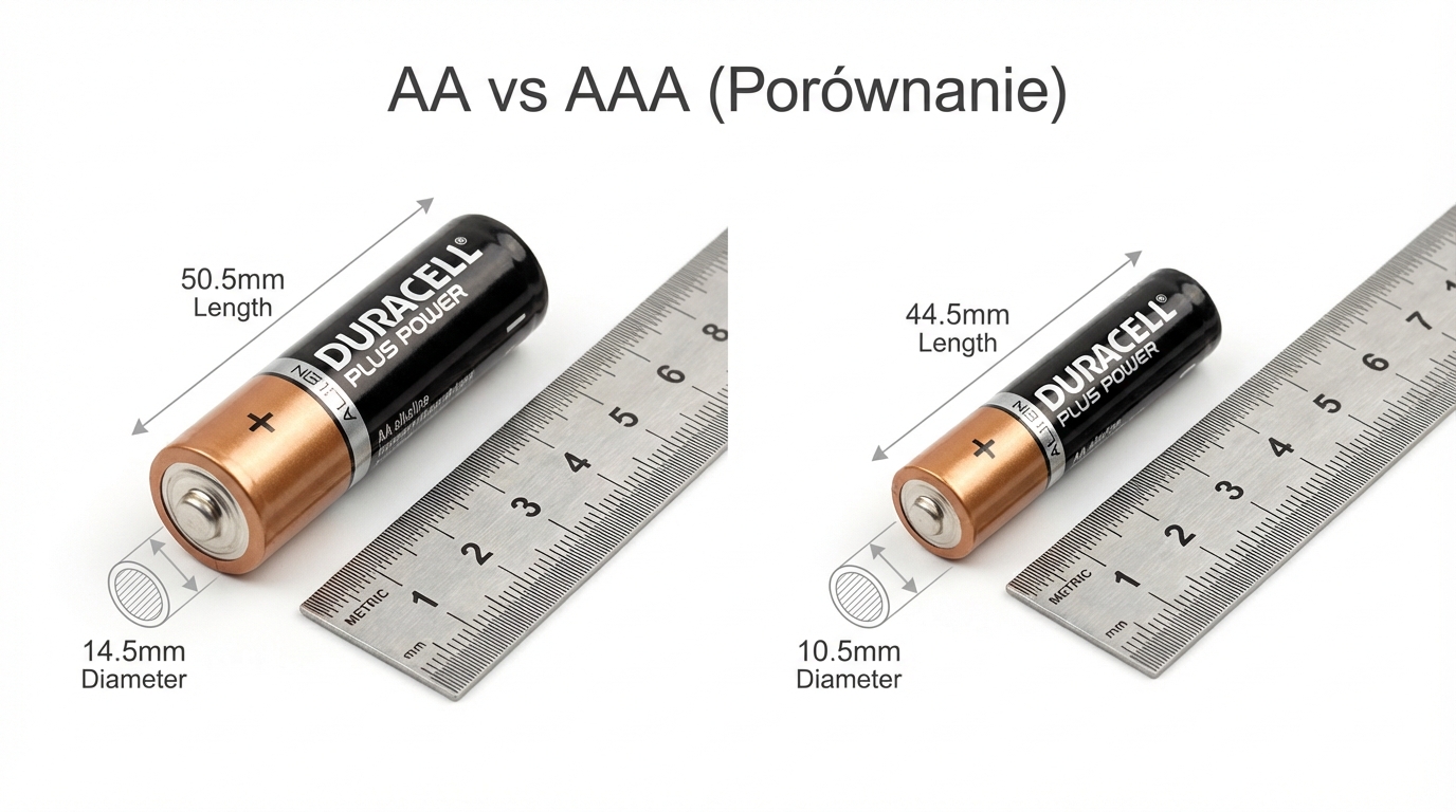 Parametr Bateria AA Bateria AAA Co to zmienia w praktyce